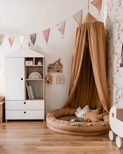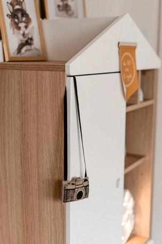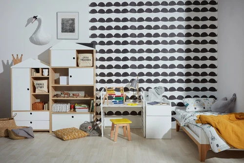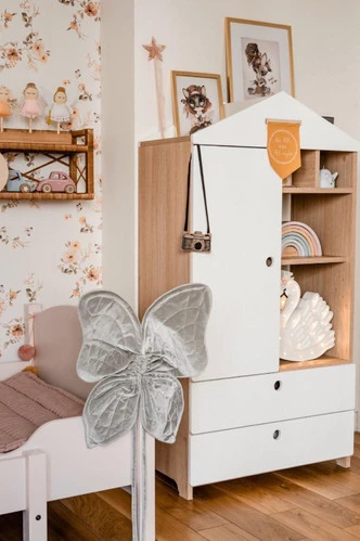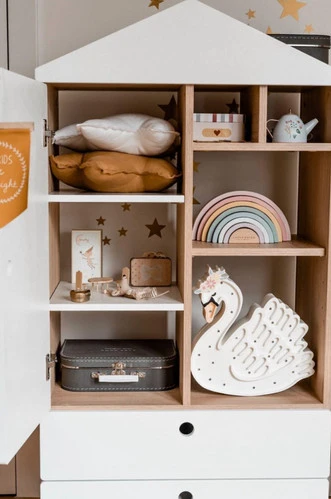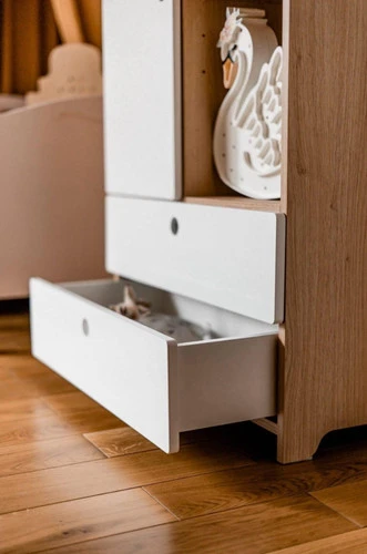 Une armoire simple et originale avec deux tiroirs inférieurs équipés pour un rangement pratique de livres, boîtes, jouets et autres trésors indispensables dans la chambre de votre enfant.