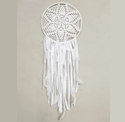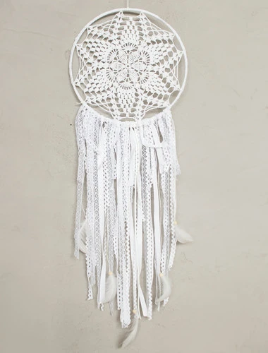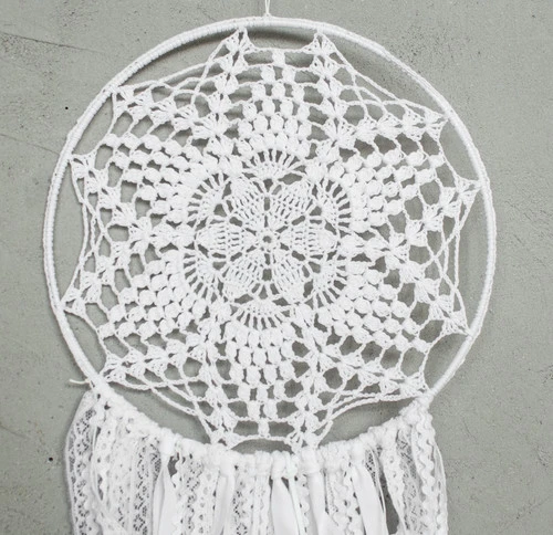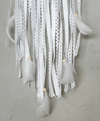 Le capteur de rêves est soigneusement créé d’une dentelle au crochet étirée sur un cerceau. Le tout est orné de rubans, de dentelles…