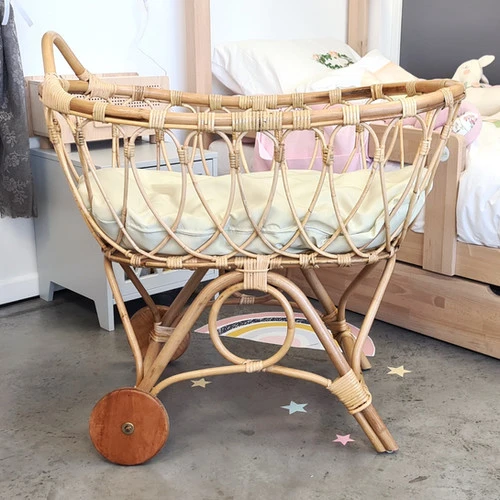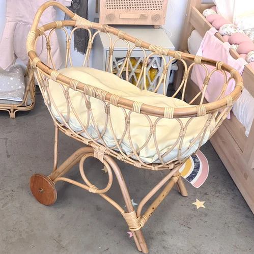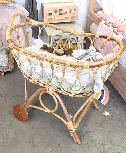 Beau berceau en rotin qui apporte une belle ambiance bohème à votre intérieur.