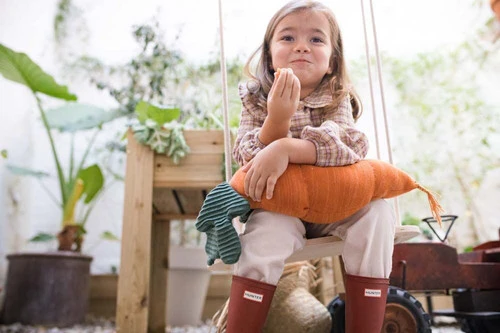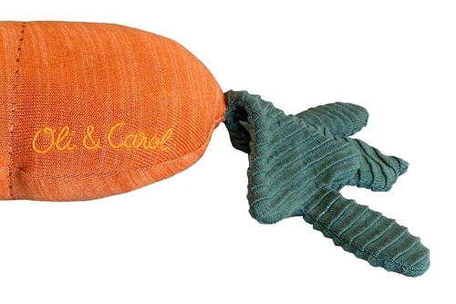 Les enfants en bonne santé aiment grignoter des carottes, alors pourquoi ne pas les intégrer à la décoration de leur chambre ? Et qui sait? Ce compagnon de jeu amusant peut également attirer un lapin de Pâques ou deux ! Ce coussin en coton doux a la forme d’une carotte et est tricoté dans des tons chinés de fil orange, surmonté de fil vert pour les feuilles. La pointe comporte une petite tresse faite à la main ressemblant à la racine. Son garnissage moelleux est composé de polyfill et l’ensemble du coussin est lavable en machine.