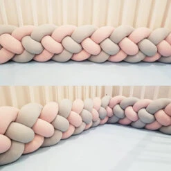 Tour De Lit Tressé 4 Grains Jersey De Coton Blanc Gris Et Babyblue