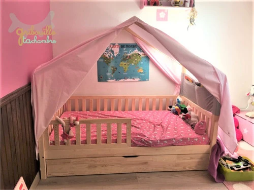 Un joli nid douillet pour votre enfant encore plus éllaboré grâce à cet habillage complet pour modèle lit cabane Pinède 90cm de lare maximum.