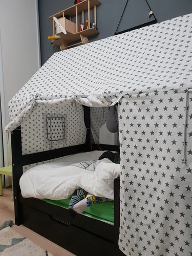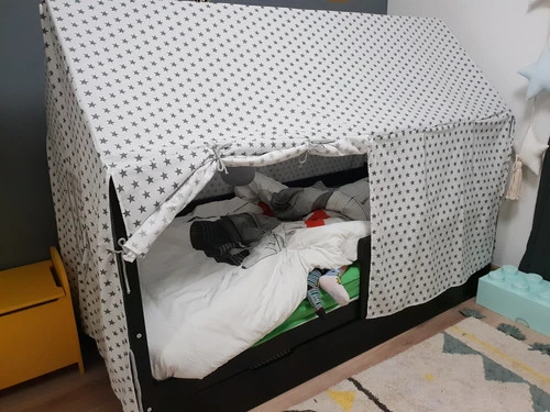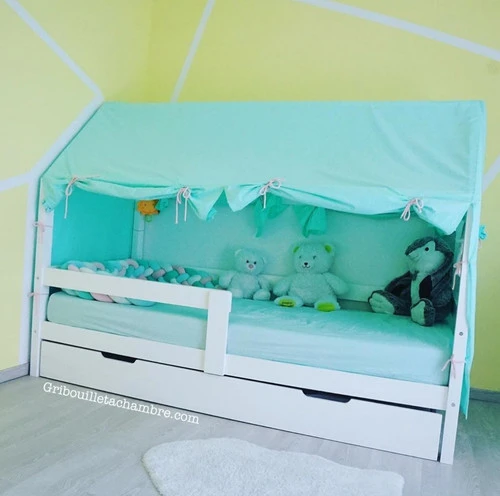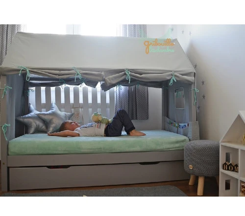 Un joli nid douillet pour votre enfant encore plus éllaboré grâce à cet habillage complet pour modèle lit Maison de largeur 90cm maximum.