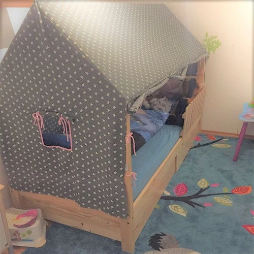 Habillage 100% fait main exclusivement pour nos lits, modèle Maison.
