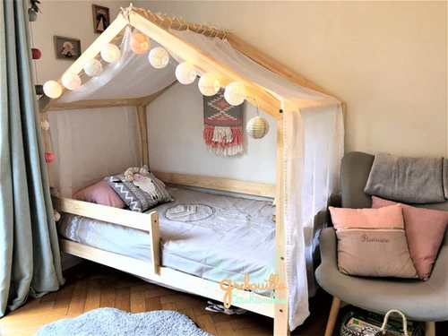 Un joli nid douillet pour votre enfant encore plus éllaboré grâce à cet habillage pour modèle lit Maison uniquement (y compris versions Pilotis et superposé).