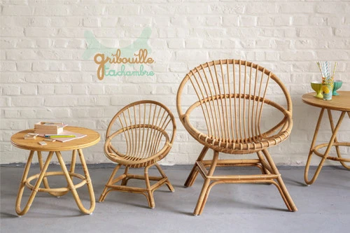 Magnifique petite table en Canne naturelle pour une décoration Chic et bohème dans la chambre de votre enfant.