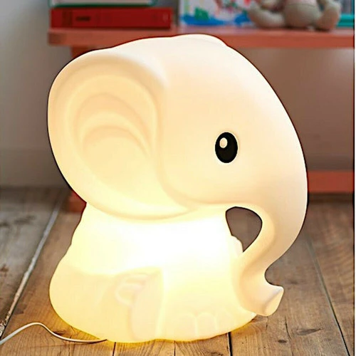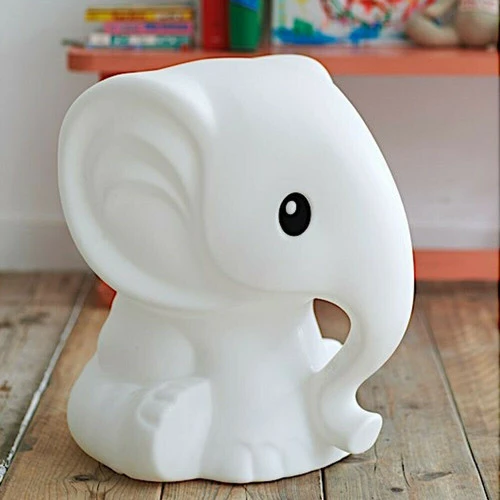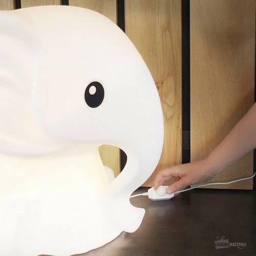 Lampe à poser Anana en forme d’éléphant réalisée en polypropylène et équipée d’un variateur d’intensité lumineuse intégré sur le câble d’alimentation en plastique blanc.