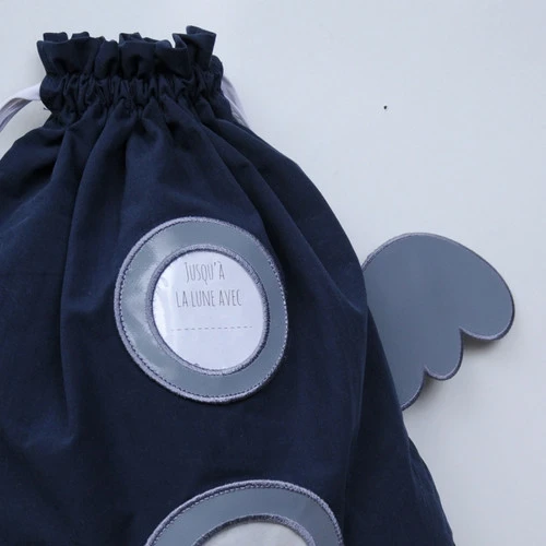 Joli sac à dos our explorer l’espace. Facile à enfiler pour apporter ses petites affaire partout avec soit.