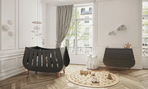Lit de bébé de forme à la fois moderne et enveloppante.