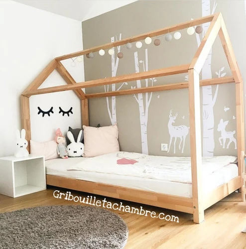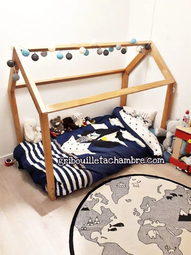 Et cela est valable dès le plus jeune âge !Pensez à installer un tapis devant le lit pour faire la transition avec le sol.Un lit Montessori = chambre sécuriséeQui dit « lit Montessori », dit chambre adaptée.L’enfant ne doit pas risquer de se blesser en se déplaçant.