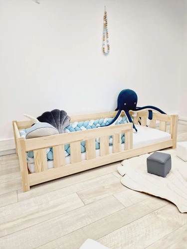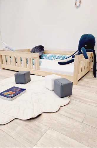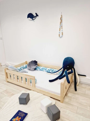 Pensez à installer un tapis devant le lit pour faire la transition avec le sol.Un lit Montessori = chambre sécurisée
