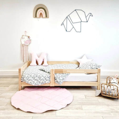 Pensez à installer un tapis devant le lit pour faire la transition avec le sol.Un lit Montessori = chambre sécurisée
