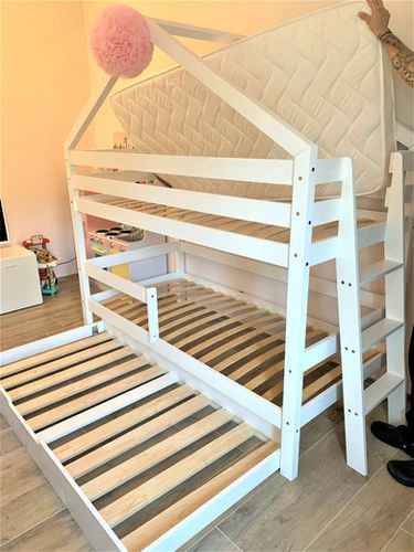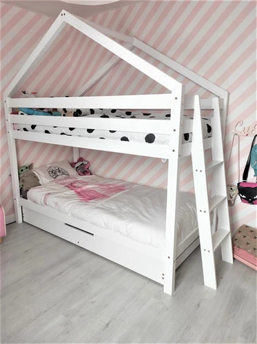 Craquez pour ce Magnifique Lit Cabane en modèle superposé avec son tiroir à utiliser en rangement ou couchage supplémentaire!