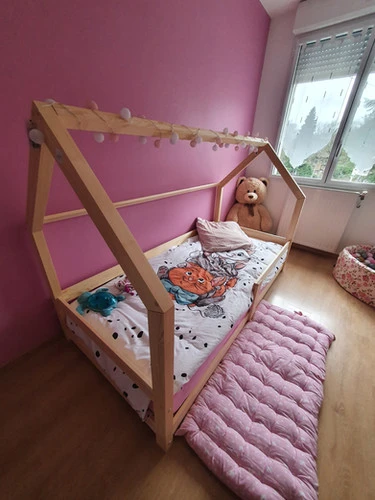 Ce type de lit est très facilement personnalisable à l’aide d’habillage de toit, de voilages, de jetées de dentelles, de guirlandes…