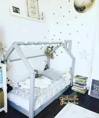 Ce type de lit est très facilement personnalisable à l’aide d’un habillage de toit, dentelles, voilages, guirlandes…