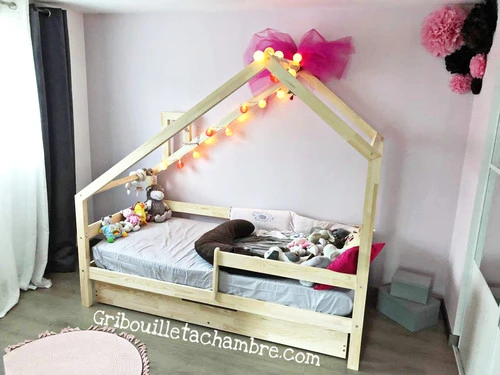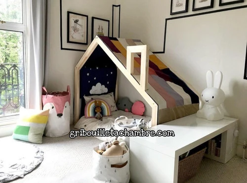 Ce type de lit est très facilement personnalisable Ă l’aide de rideaux, voilages, guirlandes…
