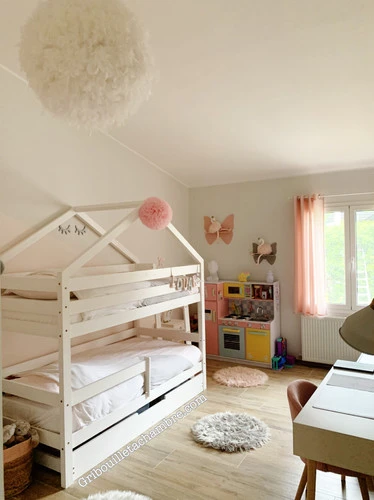 Lit Maison d’archi avec ses barrières Fermette pour que votre enfant bénéficie d’un cocon tendance pour dormir, se détendre, s’amuser…Il peut être utilisé comme lit, comme cabane, comme espace de lecture…