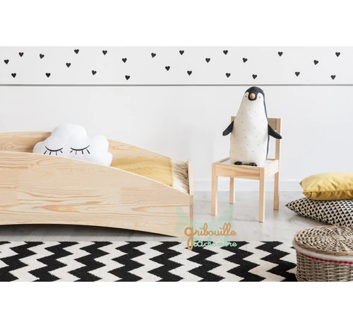 Et cela est valable dès le plus jeune âge ! Pensez à installer un tapis devant le lit pour faire la transition avec le sol.Un lit Montessori = chambre sécurisée