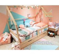 Lit Maison Avec Tiroir Blanc, Gris, Rose, Mint Ou Noir Avec Ou Sans Barrières