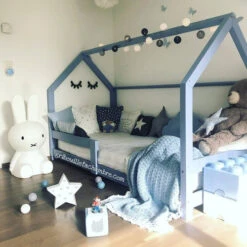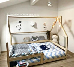 Lit MAISON Blanc, Gris, Rose, Mint Ou Noir Avec Ou Sans Barrières