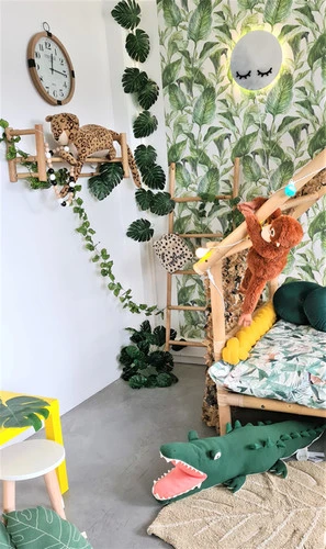 Habillez le lit et les meubles ou murs de la chambre de votre enfant avec de belles feuilles au thème de la Jungle!