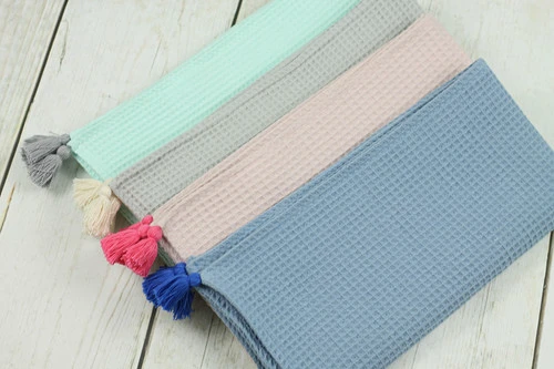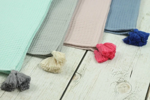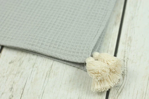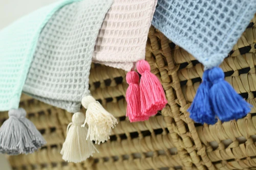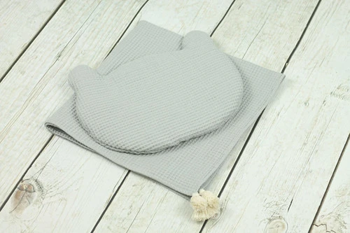 Jolie parure pour bébé en tissu gaufré. Couverture et coussin fin moelleux.