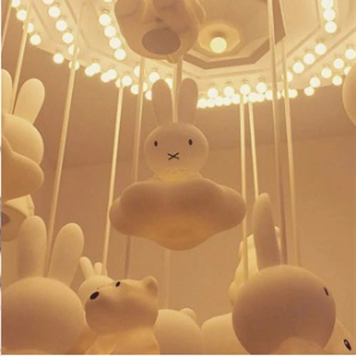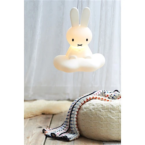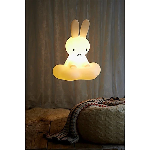 Le lapin Miffy en lampe ‘plafonnier’. Cette lampe design convient parfaitement à éclairer une chambre d’enfant. Cable de 1,5m, ampoule économique intégrée.