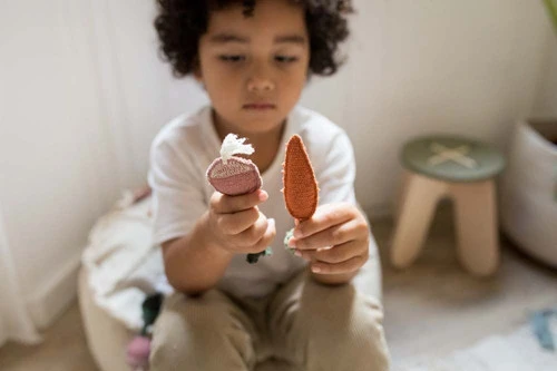 Tout comme le tapis Oli&Carol Veggie Garden est plus qu’un simple tapis, le pouf Tic-Tac-Toe est aussi plus que cela ! Il sert de jeu de société pour les enfants et les adultes pour partager du plaisir en utilisant un ensemble de mini-légumes en tissu farci comme compteurs.