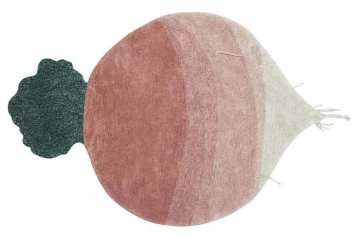 Plus comme un tapis de jeu en coton pelucheux qu’un simple tapis, sa surface dissimule de petites poches où les légumes en toile peuvent être « plantés ».