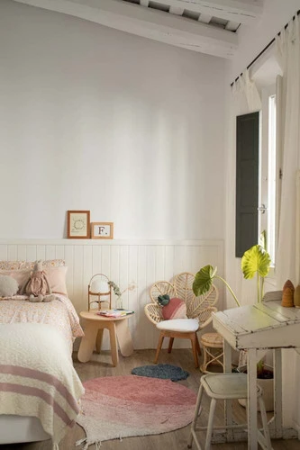 Son design uniforme, dans le beige naturel de la fibre de coton elle-même, combine différentes hauteurs de poils et plusieurs techniques de couture – velours coupé, boucle et chenille – pour obtenir une finition à texture mixte, tandis que son contour irrégulier donne un aspect organique à la forme rectangulaire.